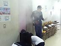 先生たちも、生徒たちと一緒にびしょぬれになってしまいました。