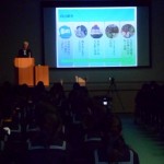 First, the students in the gymnasium were a little bit nervous since the lecture title sounded so difficult. However, as the lecture started, they felt relaxed and intensively listened to the lecture because her lecture was so interesting and easy to understand.