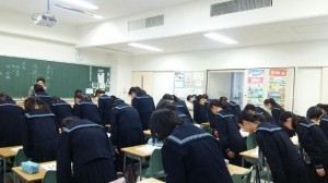 初めての道徳授業、中学1年生は緊張した面持ちで