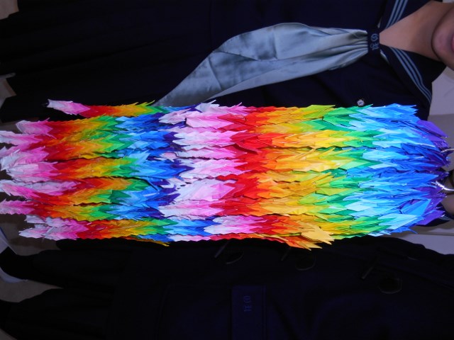 めいめいが心を込めて折ったたくさんの小さな鶴を、