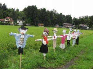 田植えだけでなく、少しでも自らの植えた稲との関わりを長く持ってもらいたいと思い、夏休み中に各クラスでカカシを作製しました。