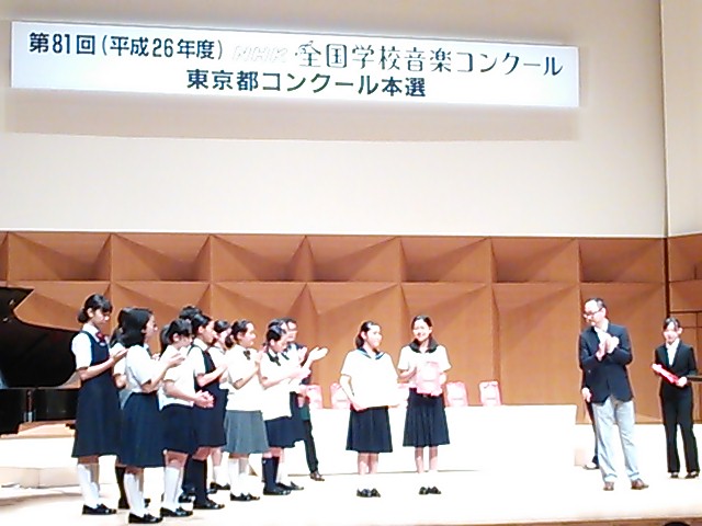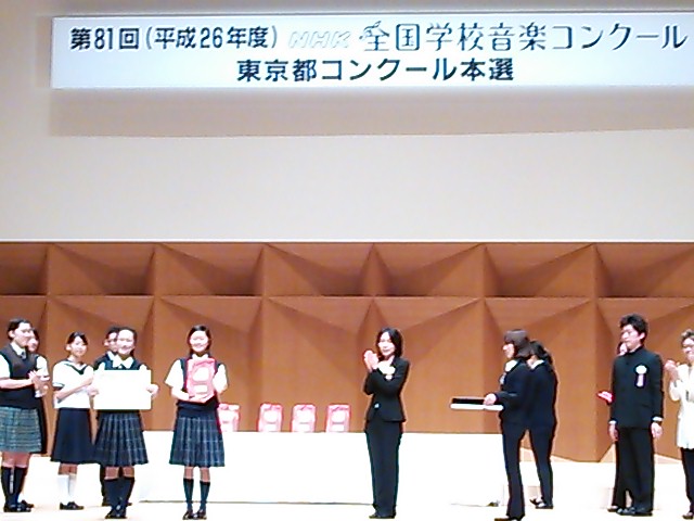 2014.08.08 お知らせ合唱部 NHK全国学校音楽コンクール東京都大会NHK全国学校音楽コンクール 東京都大会 8月6日(水)・8月7日(木)に行われた第81回NHK全国学校音楽コンクール東京都大会にて、大妻中野合唱部は6日の中学校部門、7日の高等学校部門両方で金賞をいただくことが出来ました。 いつもあたたかく支え、見守ってくださるみなさま、本当にありがとうございます。 9月6日(土)に行われる関東甲信越大会で東京都代表の名に恥じない、大妻中野らしい演奏を披露するため、今後も練習を重ねてまいります!