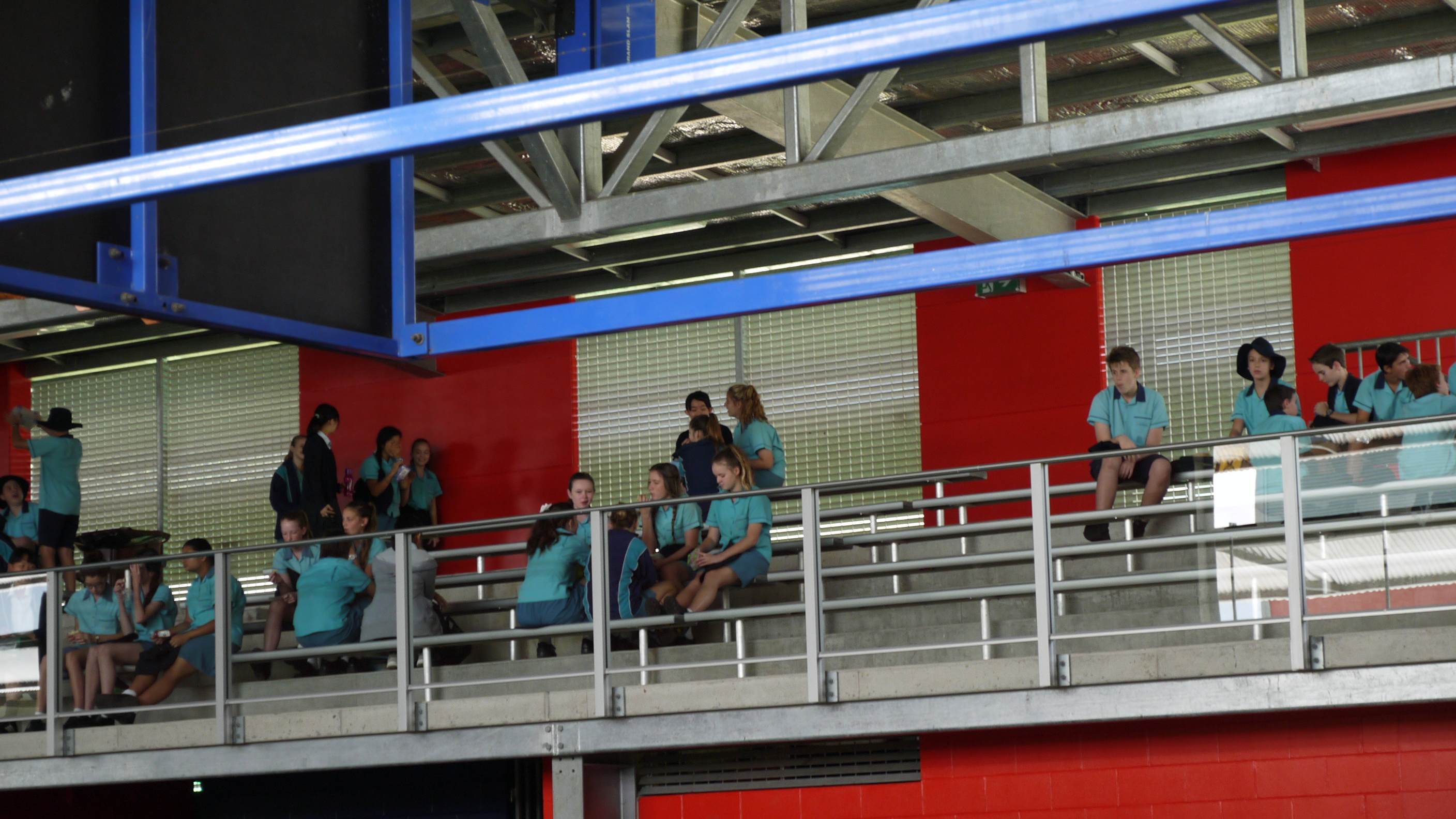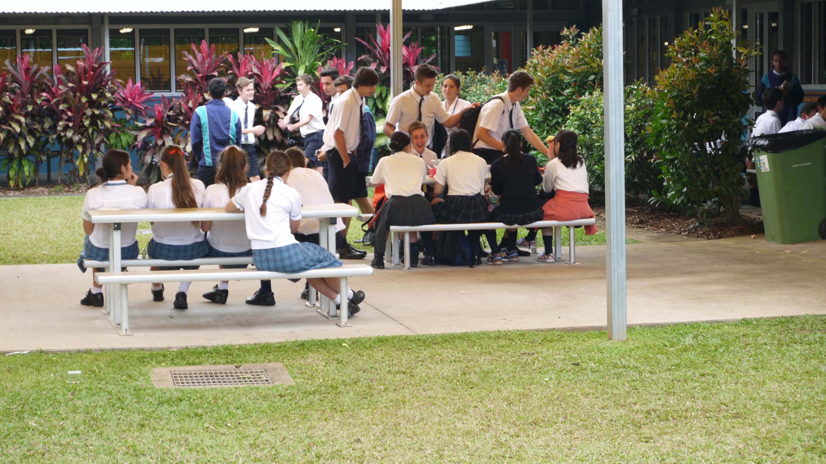 1日2回のブレイク・タイム。芝生でランチを食べながら、盛り上がっている生徒もいれば、スクール・ジムの観客席で雨を避けてのダイン・アウトの生徒もいます。スクールバディの友達も一緒です。バディとのコミュニケーションもだいぶスムーズにできるようになりました。セントアンドリュースの高等部の女の子と一緒にガールズ・トークで弾けるような笑い声のグループもあります。男子生徒も加わってのランチグループの生徒もいます。思い思いにセントアンドリュースでの学校生活を楽しんでいるようです。
