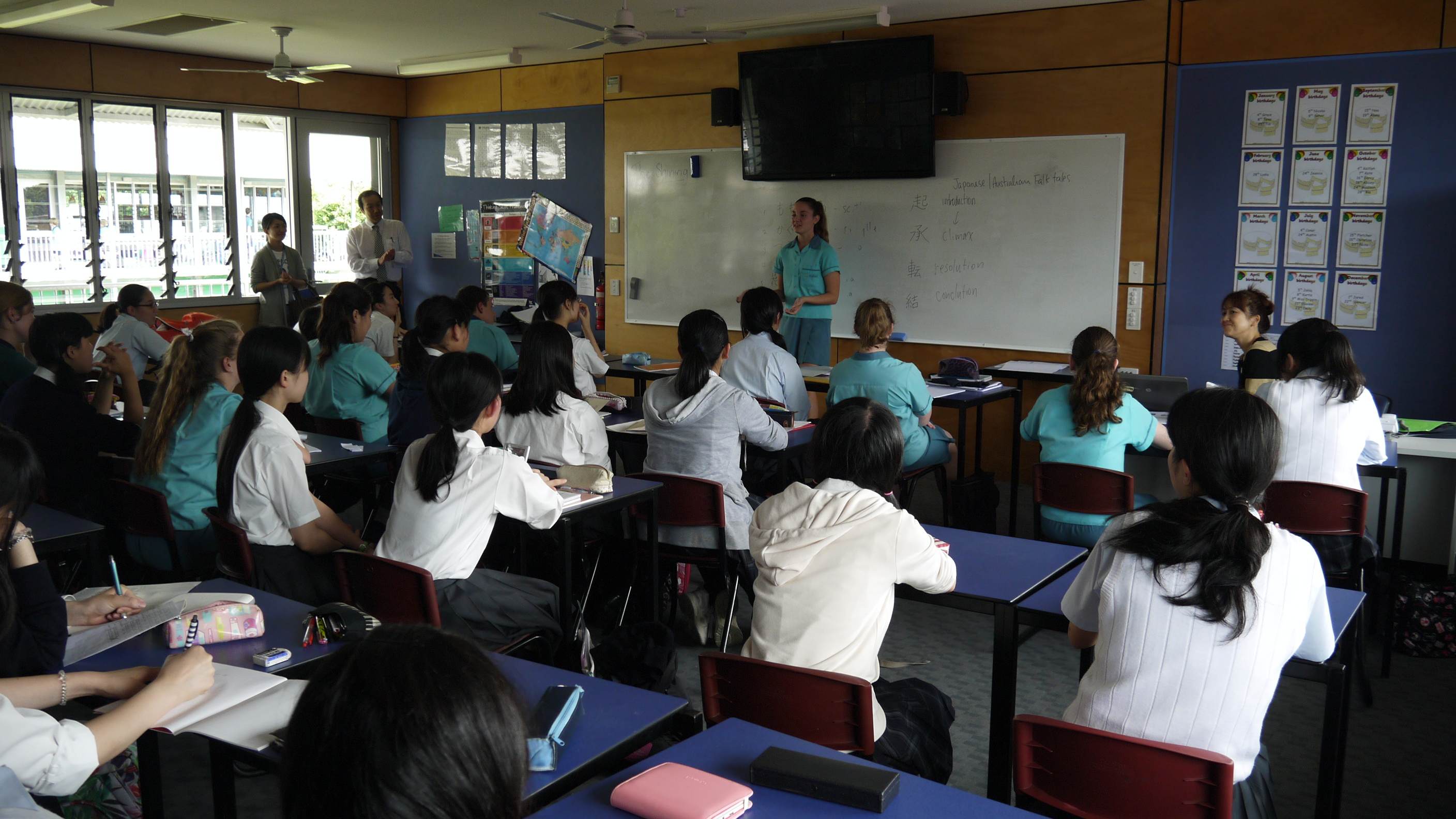 午後は、Year 9thの日本語クラスに全員で入ります。「日本の物語の構造とその背景にあるモラルとは?」クール・ジャパンのキラー・コンテンツ、「ジブリ・アニメ」が得意な生徒の出番です。セントアンドリュースの高学年の日本語科のコンセプトは、語学としての日本語を教えるにとどまらず、日本文化を知って、文化の相対性を認識することにあります。「かぐや姫」の物語が伝えるメッセージは?日本にいる私たちがどれだけこの問いに答えられるか?日本のことを知らないことに気が付くこともまた大切なことです。