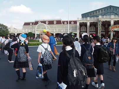 2014.05.16 お知らせ高校1年 遠足 5月15日(木)、高校1学年はアメリカのポップカルチャーとホスピタリティを学習するために、東京ディズニーランドを訪れました。 あいにくの雨の中、出迎えてくれたミッキーマウスと、シンデレラ城を背景に写真を撮ったりしました。 アメリカンポップカルチャーのあらゆる要素を詰め込んだ東京ディズニーランドで、日頃の勉学やクラブ活動の疲れを癒やす楽しい一日でした。 路上で見つけました。ディズニーランドの清掃員の方がさっと描いてくれたミッキーです。