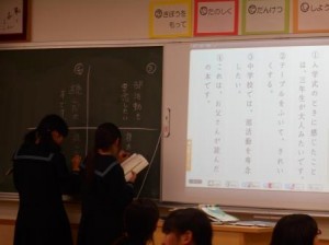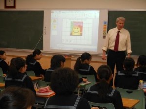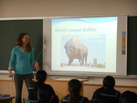 2014.04.21 お知らせ授業参観週間授業参観週間 今週は在校生の保護者の方々に授業の様子をご覧になっていただく一週間です。 新しいクラスメイトや授業担当の先生の様子を保護者のみなさまが教室の後ろから熱心にご覧になっていました。 今年度から本校の英語授業を担当するネイティブ教員のクリスティーナ・マスター先生が地元ダコタの巨大バッファローの画像を電子黒板で紹介中。あまりに巨大なバッファローに、みんな感嘆の声をあげています。 世界にはまだまだ驚くことがたくさんありますね。