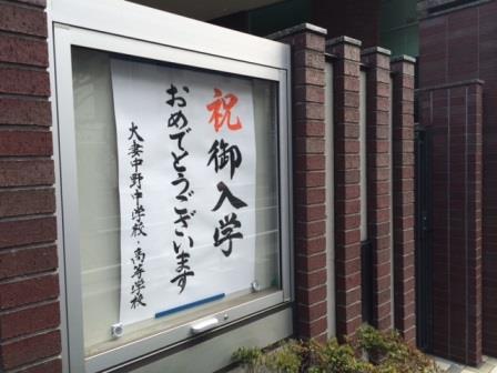 2014.04.09 お知らせ大妻中野中学校 入学式4月9日(水)大妻中野中学校 入学式 が挙行されました。242名の新入生を迎え、平成26年度が本格的に始動します。あらためて「入学おめでとうございます」新入生の皆さん貴女たちの人生の中で、とてもまぶしく輝く6年間。そのスタートの日です。いつか、この日が「本格的な宝物探しのスタートだったんだ」と気がつく日が来るでしょう。今日から「つまなか生」の仲間です。一緒に素敵な日々を造っていきましょう。