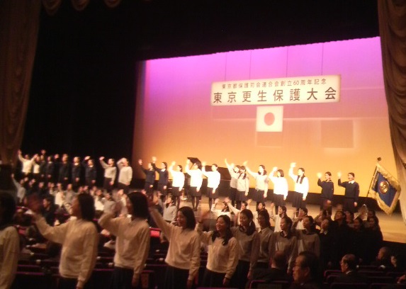2013.11.26 お知らせ[合唱部] 東京都保護司会60周年記念式典に参加しました。日頃より私たちがよりよく暮らせるように力を尽くしてくださっている保護司のみなさま。 夏のひまわりコンサートでも本当にお世話になりました!本日は東京都保護司会60周年記念の総会です。 みなさまへの感謝を込めて、合唱部より歌を歌わせていただきました。学校説明会で恒例の本校オリジナル手話や、定期演奏会で毎年ご披露しているミュージカル、保護司のみなさまに楽しんでいただけましたら幸いです。