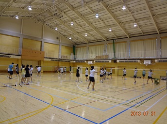 2013.08.30 お知らせバドミントン部 合宿報告昨日始業式を終え2学期が始まっています。夏を振り返り、クラブ合宿の様子をご紹介します。 7/30(火)~8/3(土)にかけて、バドミントン部は、群馬県・猿ヶ京にて合宿を行いました。 今年は高校生24名・中学生12名計36名の参加でした。 千年に一度の「猛暑」の中、基礎トレーニング・持久力アップのための走り込み・試合形式など、部員たちはいつもにも増して集中して取り組んでいました。最終日の部内ダブルス大会では、その練習の成果を発揮すべく懸命にシャトルを追いかけている姿が印象的でした。