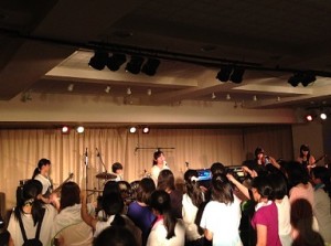 2013.08.10 お知らせポピュラーミュージック部 合宿報告7/29(月)~8/2(金)にかけて、 ポピュラーミュージック部は、新潟県岩原にて合宿を行いました。 合宿で部員たちはバンドごとのスタジオ練習や部屋での個人練習に励みます。 初めて合宿に参加した中学一年生も、OGや先輩たちのアドバイスを受けて一生懸命に練習をしました。 最後の夜のLIVEでは、それぞれのバンドが練習の成果を発表し、楽しいLIVEとなりました。 今回の合宿で得た成果と反省をいかして、次回のLIVEに向けて引き続き努力をしていきましょう。