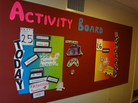UBCのドミトリーの壁には、その日と翌日の予定が、貼り出されています。