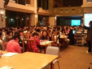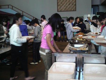 2013.05.10 お知らせ中学2年生 環境学習旅行2今日の夕食はバイキングです。コテージからセンターハウスまで坂道を降りてきました。たくさんの種類の料理が並んでいて、どれを食べようか、迷ってしまいました。 8時からは雪の有効活用についての講演を聞いて多くのことを学習できました。 10日の朝食もバイキングです。和食と洋食を自由に選びました。