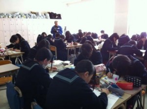 2012.11.23 お知らせ中学3年生 東松島市との交流中学3年生東北 東松島市の皆様に送る「来年度カレンダー」製作しています。この学年、夏には「うちわ」をお送りしました。すべて生徒から出された提案。早速実行に移しています。「まずできることから一歩を踏み出す」