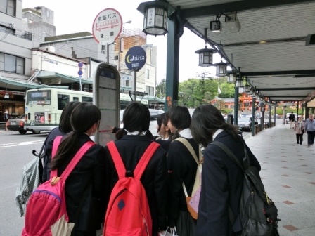 2012.05.11 お知らせ高2 歴史文化研究旅行歴史文化研究旅行5月11日 くもり風が冷たく、肌寒い一日でしたが、本日は自主研修、生徒たちもはりきっていました。生徒たちは、班ごとに自分たちでコースを決め、京都をめぐります。金閣、銀閣、清水寺、三十三堂など、行き先はさまざま。自分たちのテーマに沿って行動しました。