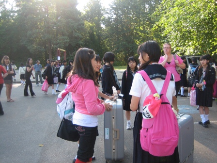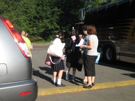 別れの余韻も冷めぬまま帰国の時となり、生徒たちはバスに乗り込みました。