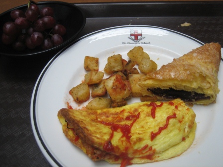 朝食はチーズのたっぷり入ったオムレツとブルーベリーパイです。(写真↓)