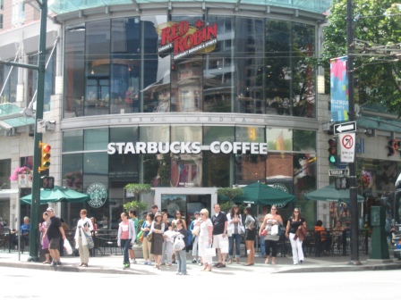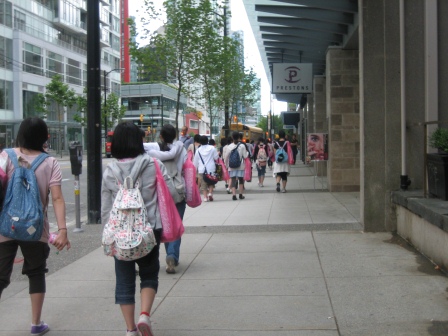 ロブソン通りはダウンタウンのメインストリートです。カナダらしいショップや日本でもお馴染みのショップが立ち並び、生徒も買いものに熱が入っていました。