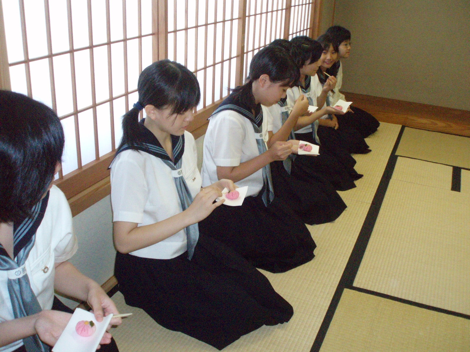 2008.09.18 お知らせ中学生情操教育 茶道・華道 ☆ 茶道・華道の授業 ☆中学生全員が 茶道・華道・書道 の授業を受講します。情操教育の一環として位置づけ、シラバスでは 茶華道は中1~中2の2年間、書道は中3までの3年間受講します。