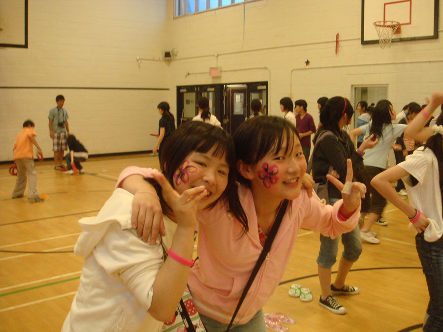 学校の体育館にいろいろなゲームをする場所があってみんなで遊びました!