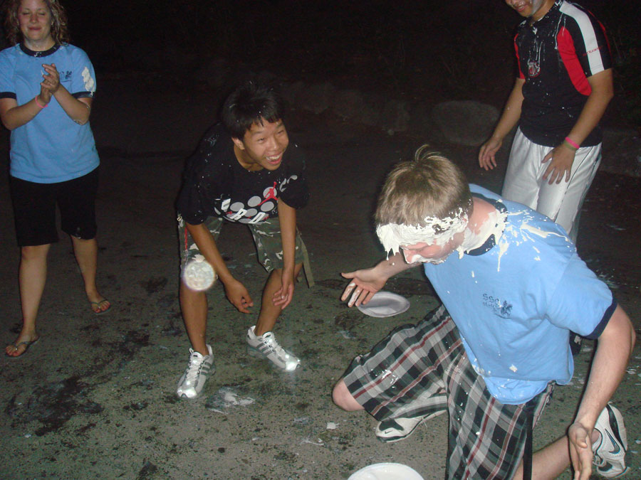 一番お金を多く集められた生徒がスタッフにパイを投げつける!!!