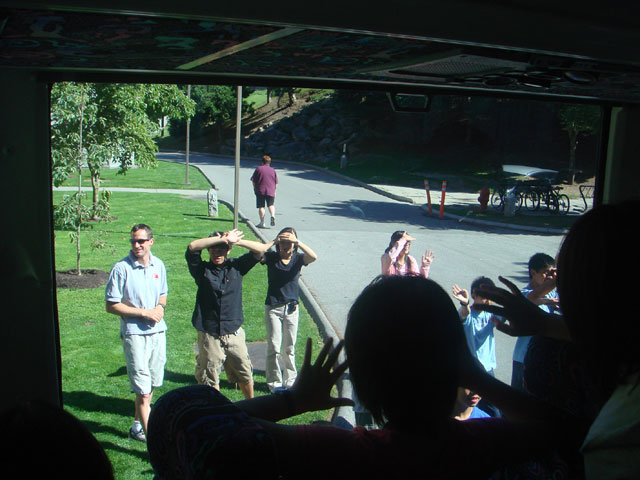 待ち合わせ場所のフレイザー・バレー大学に近づくに連れ緊張が高まってバスの中で最後まで英会話レッスン「言葉が分からなくても大丈夫だからあいさつと笑顔!」