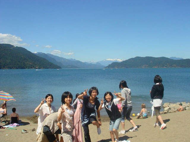 バスに乗り込みAbbotsfordという街のFraserValley渓谷へ。ホストファミリーに会うまでFraserValleyの綺麗な名所を巡りました。Abbotsfordはバンクーバーより田舎で山にかこまれた美しいところです。HarrisonLakeの水は本当にきれいなブルーでみんな元気に冷たい水の中に入っていきました。