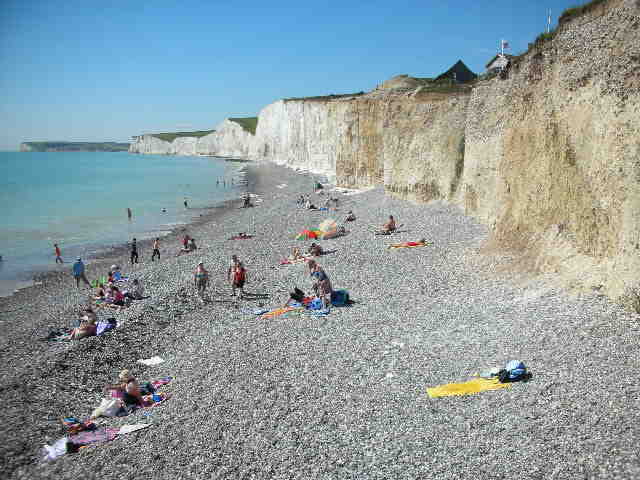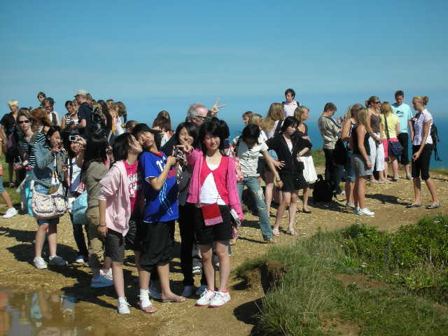 午後は、折角のお天気なのでボーリングの予定を変更し、ブライトンから30キロほど離れた絶景スポット「Seven Sisters」へ。シェークスピアが出てきそうな、何百年も前からある古民家が並ぶ美しい村を時折通り過ぎながら、純白の断崖絶壁Seven Sistersに到着。車から降りたみんなが真っ先に向かったのは、海岸ではなく脇の山小屋風ロッジにある魅力的なソフトクリーム屋さんでした。Seven Sistersの名前の由来は、絶壁のシルエットが7人の修道女の頭に似ているからだそうです。(下の画像をご覧ください。画像をクリックすると拡大します)美味しいソフトクリームと美しい海岸を堪能し、絶壁沿いを散策した後、学校に戻りました。