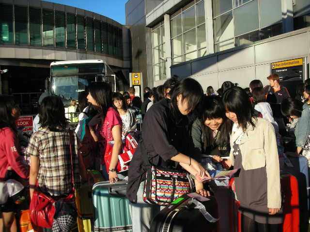 8:30頃からホストファミリーに連れられて、参加者のみんなが登校してきました。数時間ぶりに妻中の仲間に再会して、ホッとした表情をしていました。不慣れな環境で緊張しっぱなしだった皆さんにとって、この数時間は相当長く感じたのでしょうね。昨日の長時間の旅であまりに疲れたので、時差ぼけどころではなくしっかりと睡眠時間は確保できたようで、ひとまず安心。