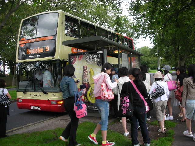 集合時間の9:00には全員がそろい、さっそくクラス分けテストが行われました。その後、本日の最大のテーマ「学校からホストファミリー宅までの帰り方」講座です。ブライトンの市内地図、路線図が渡され、学校の位置、ホストファミリー宅の位置を確認し、そのためにどこのBus Stopで何番バスに乗ればいいのか、その後どの道を進んだらよいのかを、先生方の助けを借りながら自分で確認しました。ブライトンのバス路線は、東京メトロの数倍も複雑で、乗り継ぎもあります。今日からは、自力で学校とホームステイ先を往復しなければならないので、右も左もわからない皆にとって、事は深刻なはずなのですが...生徒たちはまだ余裕の表情です。