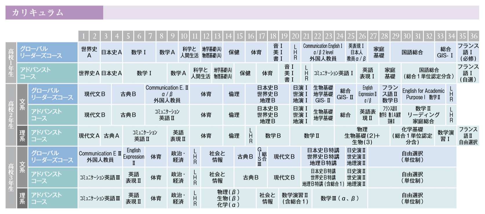 本校の教育課程は、以下の3つのカリキュラムポリシーを実現するために、「知識・技能」の確実な体得の上に、「思考力・判断力・表現力」を身に付け、「学びに向かう力、人間性等」もバランスよく育むことを目指して、編成されています。本校のカリキュラムポリシーは以下の3つです。