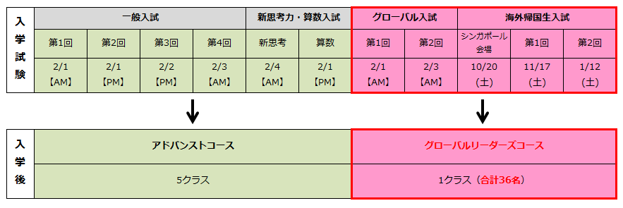 (国・算受験者でグローバルリーダーズコース希望者は英語面接あり)