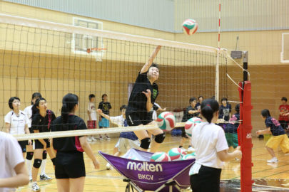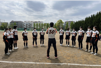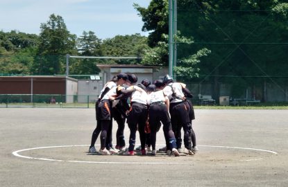 - 私たちは1試合でも多く勝てるよう、日々練習しています。アットホームな雰囲気で、先輩と後輩の仲が良い部活です。