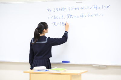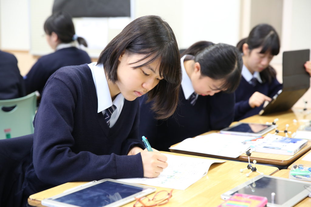 1コマ50分授業。集中して考え、積極的に発言しながら学びをもぎ取ります。